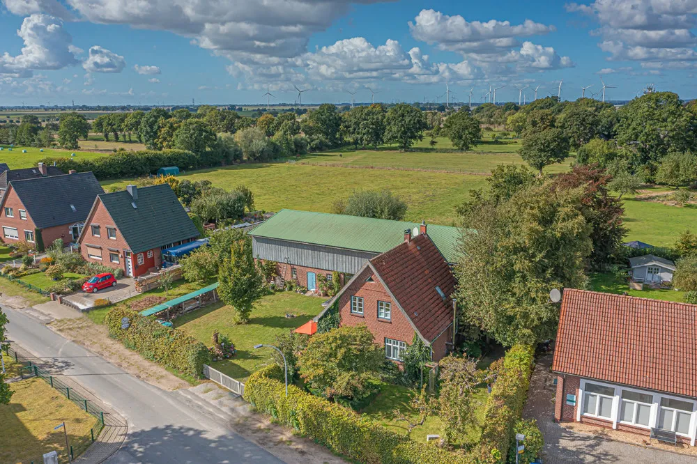 Ruheoase mit rustikalem Charme bei Elmshorn. Ländlich und dennoch zentral - Hier können Sie einerseits die absolute Ruhe auf Ihrem Traumgrundstück genießen und andererseits fußläufig alle Einrichtungen des täglichen Bedarfs erreichen. Beim Betreten des Grundstücks empfängt Sie ein großer, gepflegter Vorgarten. Das Wohnhaus selbst ist eingerahmt von alten Obstbäumen, Wiesen und Sträuchern. Von der überdachten Terrasse aus genießen Sie den Blick über den Garten auf die mögliche Pachtweide. Hier kann man die Seele baumeln lassen. Das liebevoll gestaltete Anwesen hat Ihnen eine Menge zu bieten. Insgesamt 8 Zimmer verteilen sich auf knapp 300 m² Wohnfläche und 2 Ebenen. Besonders erwähnenswert ist hier der fast 100 m² große Wohnsaal, der mit einem neuen Terrazzofußboden und Fußbodenheizung ausgestattet wurde. Ein Kaminofen sorgt nicht nur im Winter für wohlige Wärme. Dieser Raum versprüht einfach Charme und lässt sich vielfältig nutzen - Feiern mit bis zu 200 Gästen, Ausstellungen und Theateraufführungen um nur einige Möglichkeiten zu nennen. Künstler und Freigeister werden dieses besondere Wohngefühl zu schätzen wissen... Das großzügige Wohnangebot lässt sich aber auch mit wenig Aufwand in 2 Wohnungen aufteilen und bietet sich somit ideal für das Mehrgenerationswohnen an. Weiterhin gibt es im direkt angrenzenden Stallbereich noch erhebliches Ausbaupotential. Hier sind Ihre Ideen gefragt... Auch Tierfreunde kommen hier auf ihre Kosten. Die derzeitigen Eigentümer haben direkt angrenzend an den Garten eine Weidefläche von etwa 1,5ha angepachtet. Wenn Sie also auf der Suche nach einem besonderen Anwesen, welches Ihnen viele Gestaltungsmöglichkeiten bietet sind und die Nähe zur Großstadt nicht missen möchten, dann sollten Sie sich dieses Angebot einmal genauer anschauen...